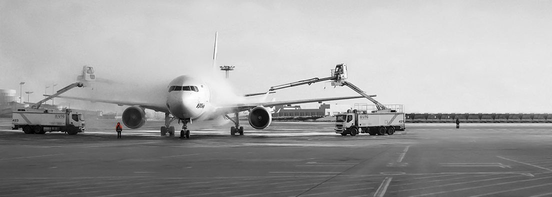 The full cycle of anti-icing waste disposal: collection of anti-icing waste on the apron, its accumulation, storage, transportation, and disposal; supply of anti-icing fluid and laboratory testing, environmental support of corporate activities, organization of warehouses, storage spaces, and bases for anti-icing treatment of aircraft.